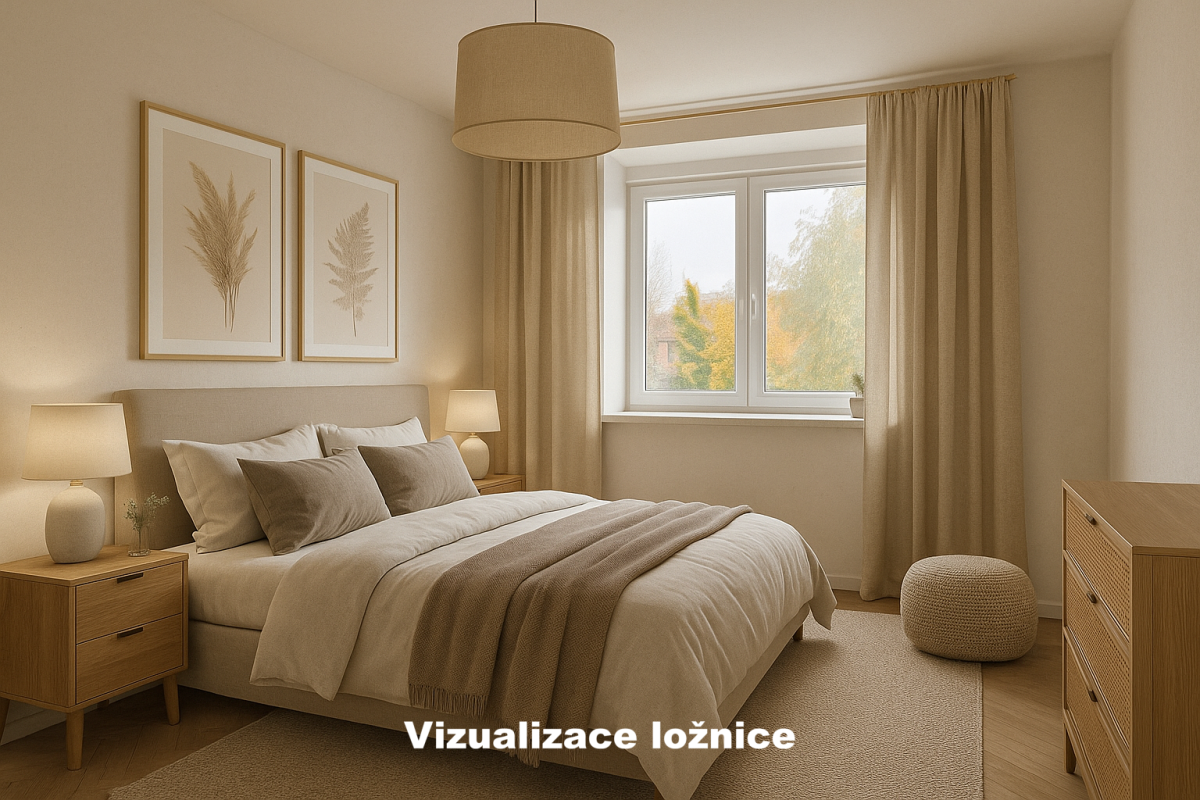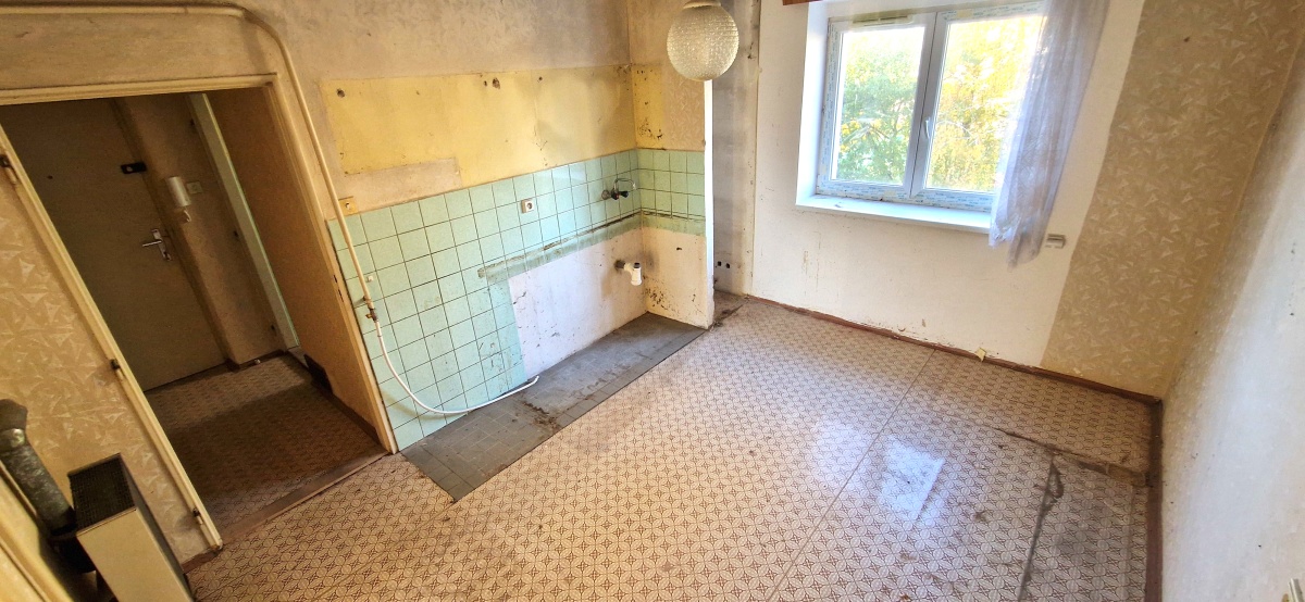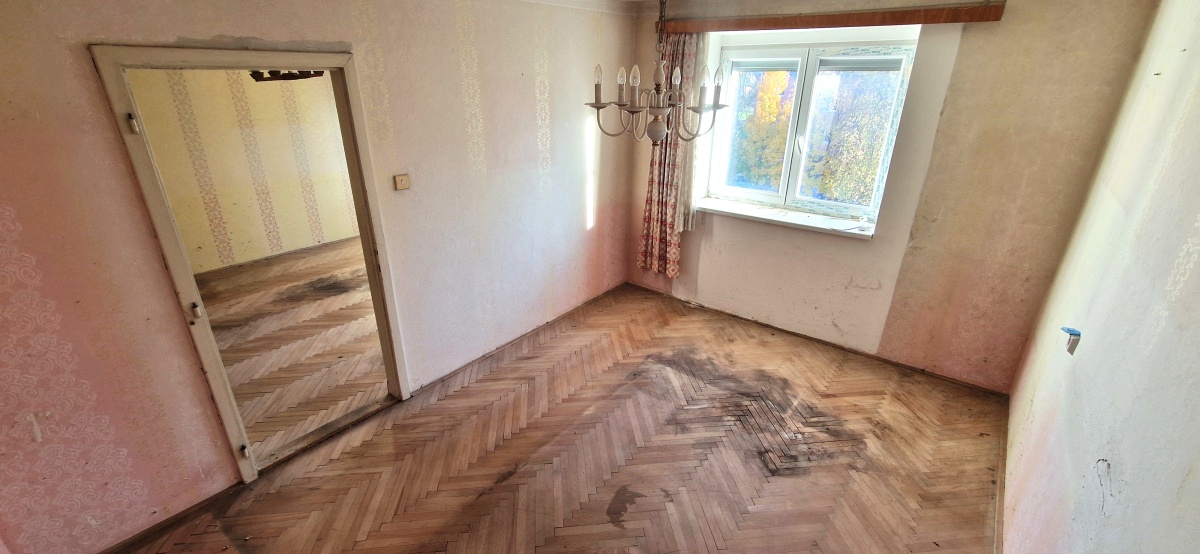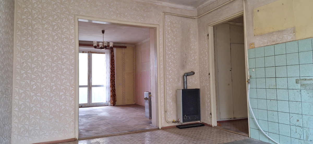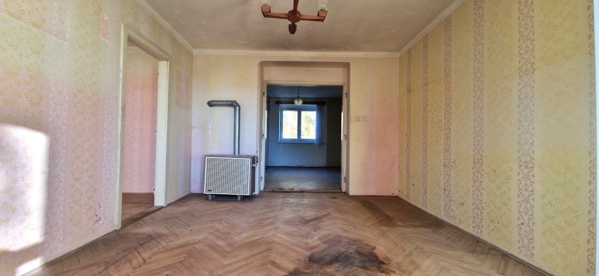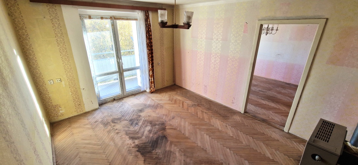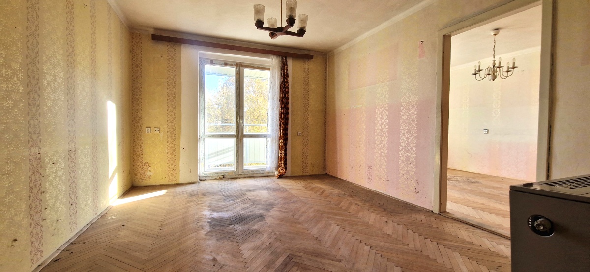Byt je v původním stavu vyžadující celkovou rekonstrukci. Dominantou bytu je prostorný obývací pokoj s francouzským oknem se vstupem na balkón. Oba pokoje mají na podlaze parkety, v kuchyni a na chodbě je položeno PVC, v koupelně je dlažba. Okna v pokojích jsou orientována na jih, okno v kuchyni směřuje na sever. Na okně v ložnici je nainstalována elektrická venkovní žaluzie. Orientace a umístění bytu je výhodou nízkých nákladů na bydlení. Vytápění je řešeno lokálními plynovými topidly waw, které jsou umístěny v obývacím pokoji, kuchyni a koupelně. Pro ohřev TUV slouží plynová karma. Byt je v současné době odpojen od elektřiny i plynu.