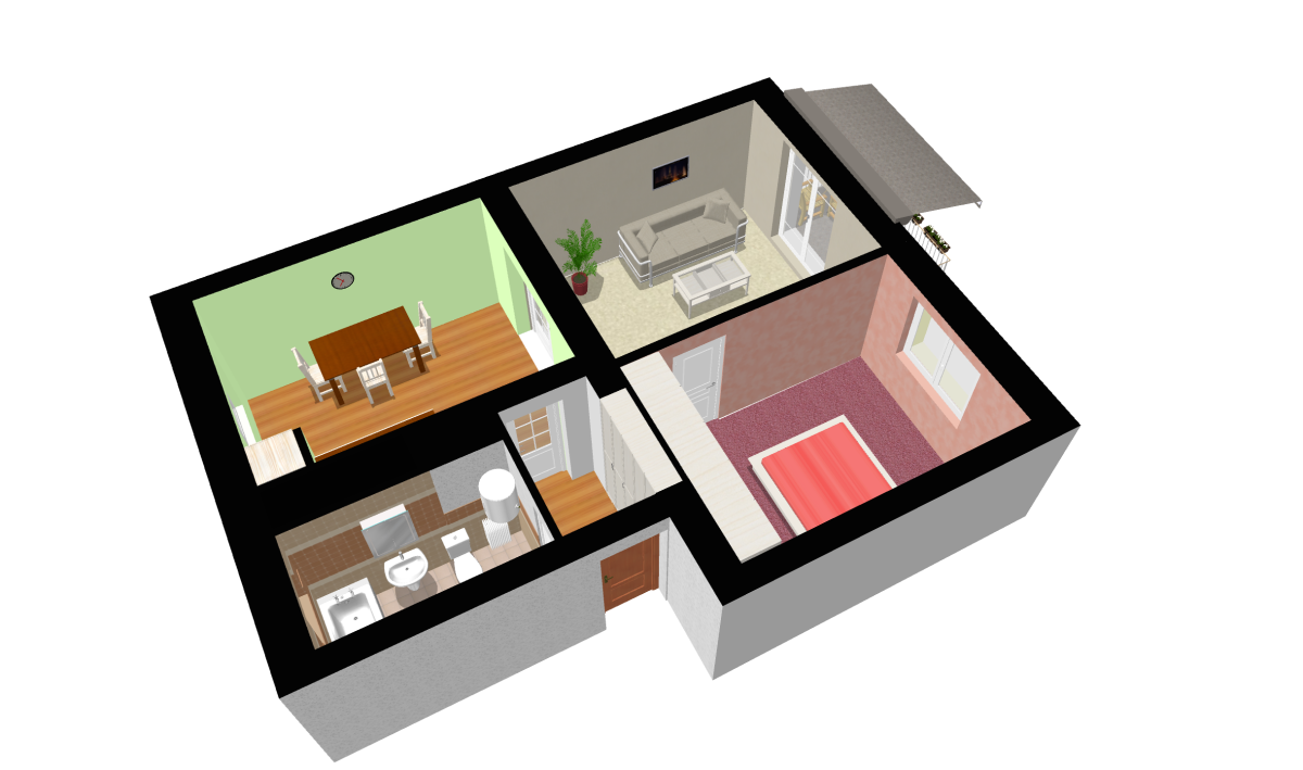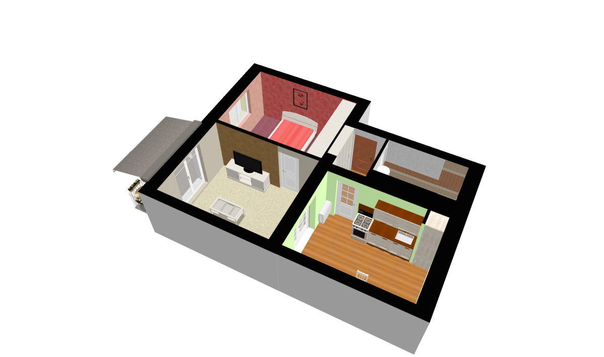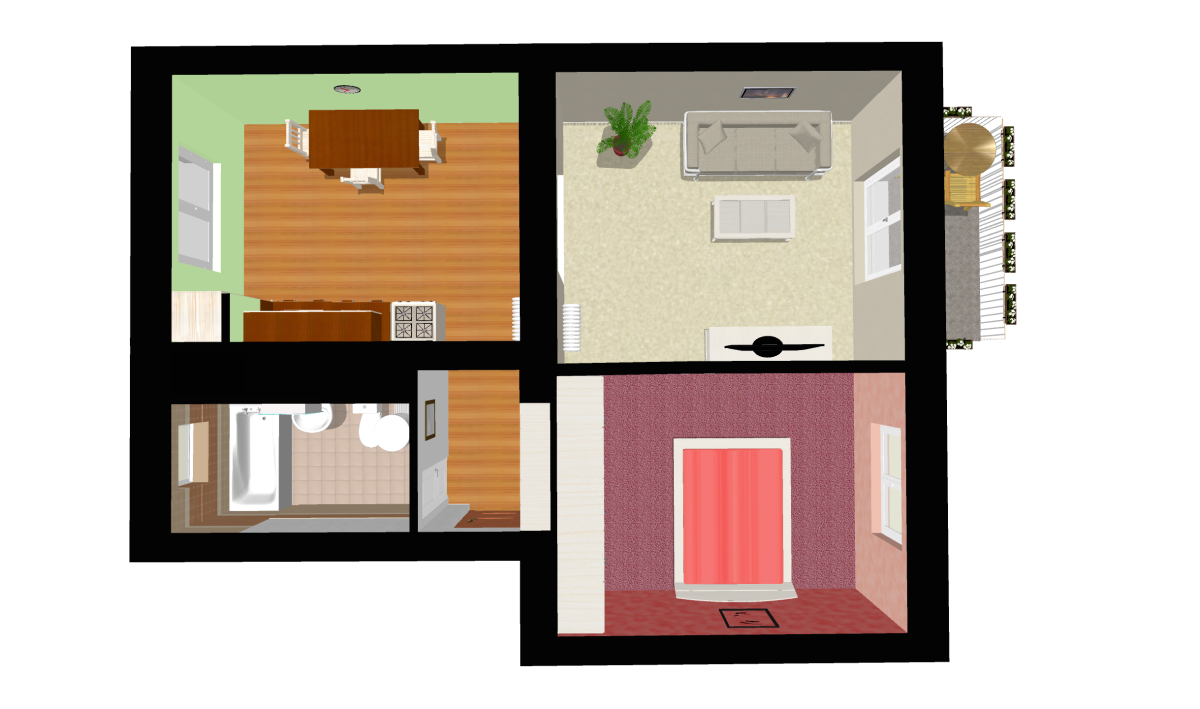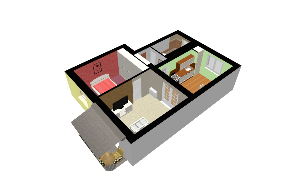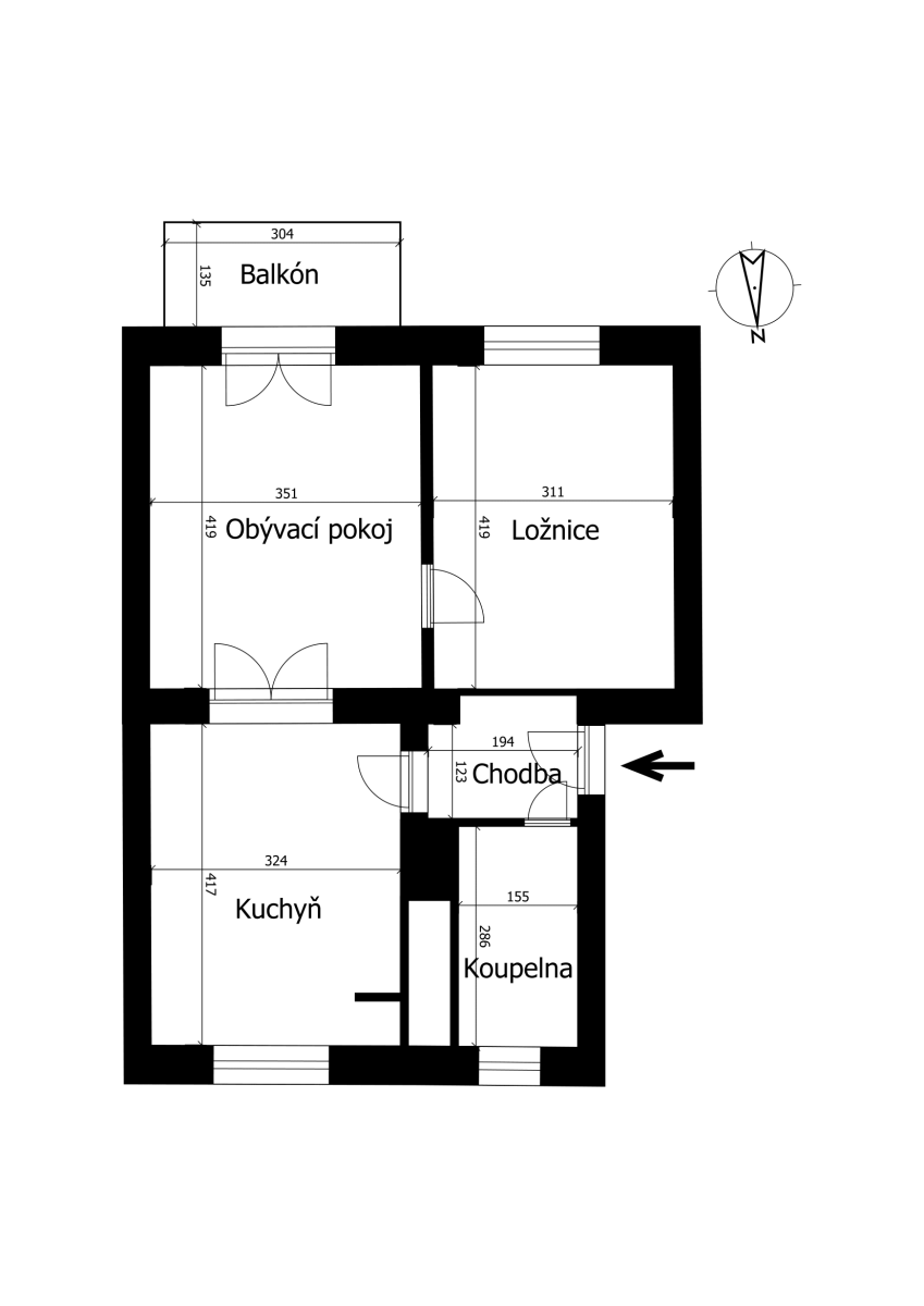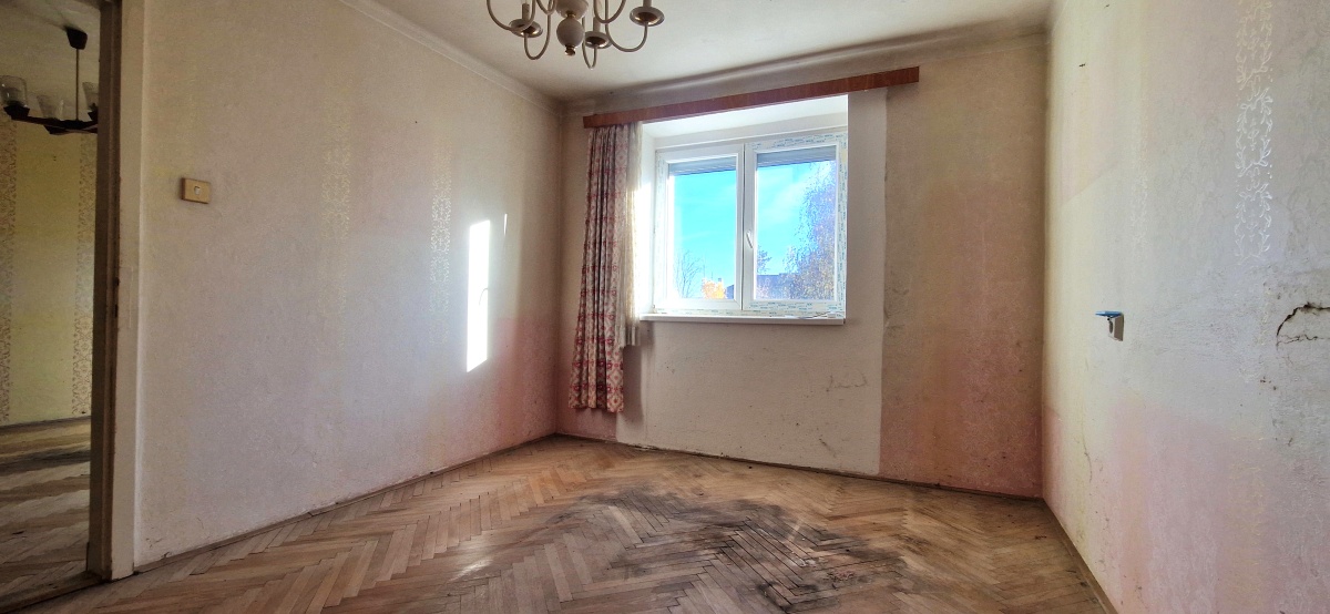 Byt je v původním stavu vyžadující celkovou rekonstrukci. Dominantou bytu je prostorný obývací pokoj s francouzským oknem se vstupem na balkón. Oba pokoje mají na podlaze parkety, v kuchyni a na chodbě je položeno PVC, v koupelně je dlažba. Okna v pokojích jsou orientována na jih, okno v kuchyni směřuje na sever. Na okně v ložnici je nainstalována elektrická venkovní žaluzie. Orientace a umístění bytu je výhodou nízkých nákladů na bydlení. Vytápění je řešeno lokálními plynovými topidly waw, které jsou umístěny v obývacím pokoji, kuchyni a koupelně. Pro ohřev TUV slouží plynová karma. Byt je v současné době odpojen od elektřiny i plynu.