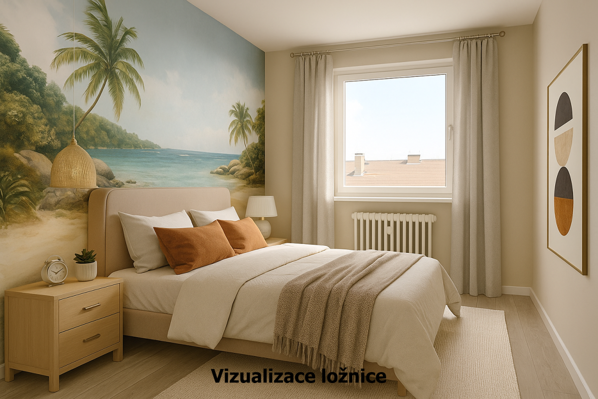 Původní stav bytu nabízí ideální příležitost pro nového majitele, aby při celkové rekonstrukci, přizpůsobil jeho vzhled svým představám. Plastová okna se žaluziemi směřují na jihozápad. Okna v obývacím pokoji a ložnici jsou navíc vybavena venkovními roletami které zajišťují příjemné klima i v letních měsících. Bytové jádro je původní, umakartové, na stěnách jsou tapety a na podlahách je položeno PVC. K bytu náleží sklep, dále je možno využívat společné prostory domu. Umístění a orientace bytu přináší nízké náklady na bydlení.